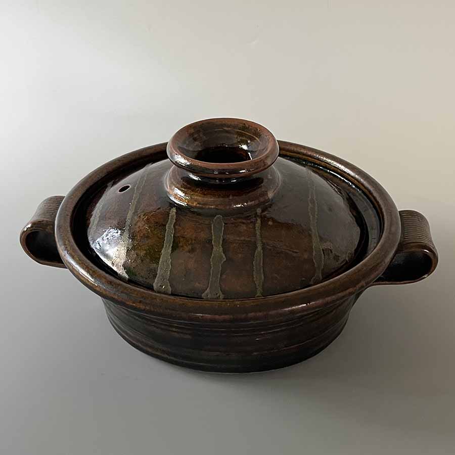 今回は、クリスマスが近づいてきましたので、西洋の鍋料理もしてみました。夫はチーズやブロッコリーなどをあまり好んで食べないので、「一人飯」ではこの時ばかりと、チーズフォンデュを作りました。写真の楕円の土鍋は長さが22センチ、幅が21センチと小ぶりで、一人の食事の時やアヒージョを作るときによく使っています。ほど良いサイズと形がとても可愛らしく、蓋も良くできています。飴色の釉薬と線柄も気に入っています。ずいぶん昔に長崎の陶磁器展で購入したので、作者の名前は忘れてしまいましたが、愛用の土鍋です。鍋の底や側面ににんにくをこすりつけて、チーズと白ワインを加え弱火で加熱し、ヘラでかき混ぜながら煮詰めます。とろみがついたら出来上がりです。