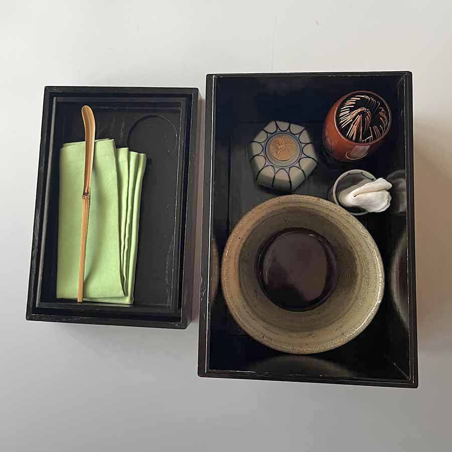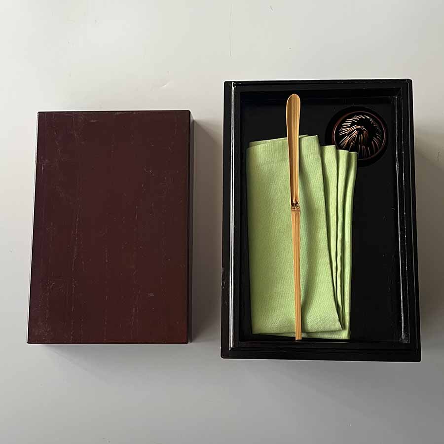 茶箱(平夏目・菊割茶巾立・菊割振出) 時代物 茶杓 自作 テーブルクロス コボリ(栃木県) |