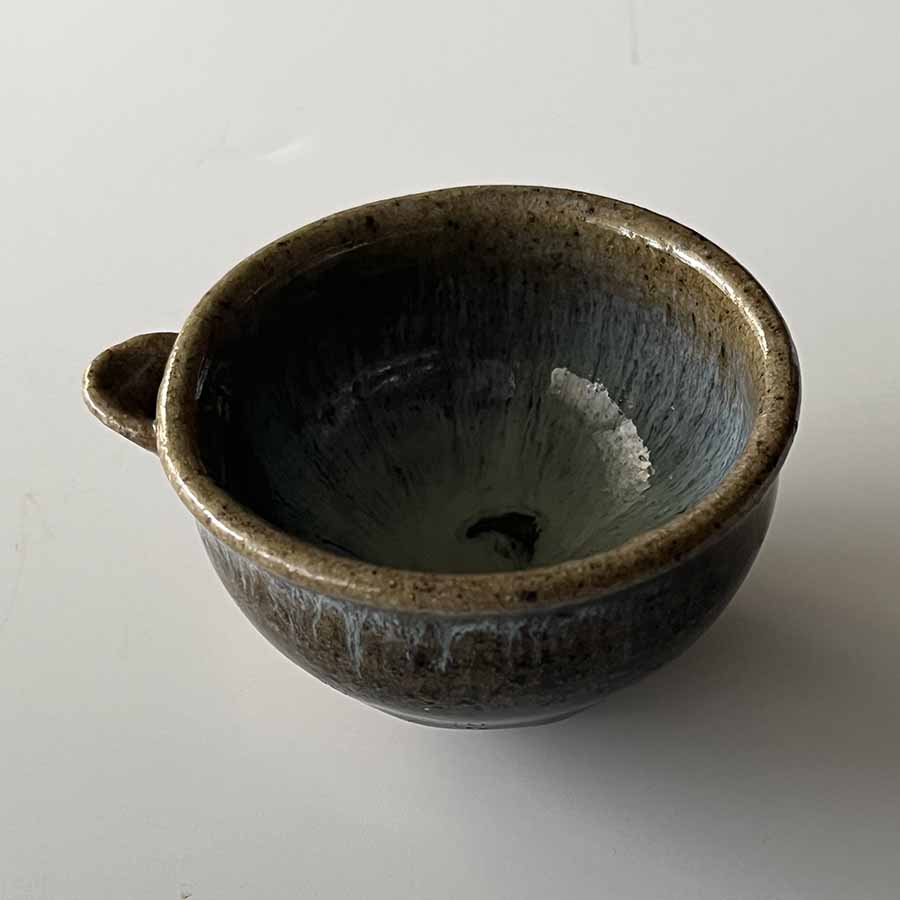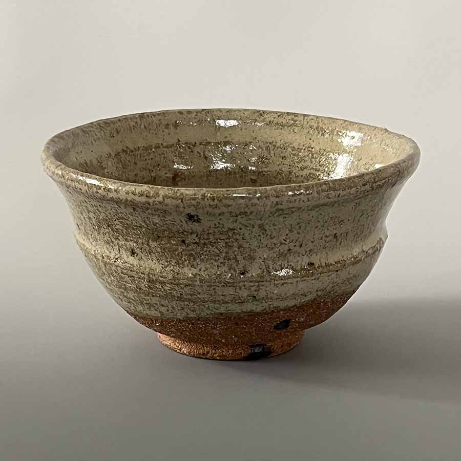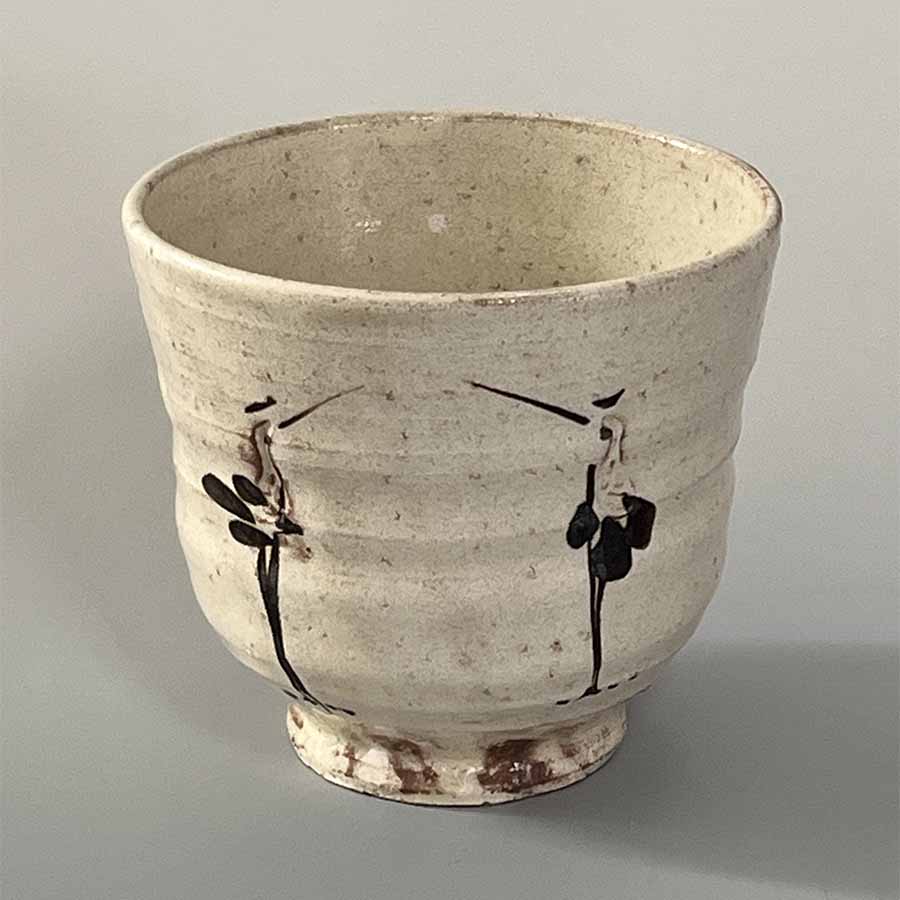 斑唐津抹茶碗 三里窯・浜本洋好作(唐津焼) 筒型向かい鶴抹茶碗 窯元不詳(京焼・清水焼) 朝鮮唐津小付 汲古窯・峰松義人作(唐津焼系武雄焼) 懐紙・懐紙はさみ(京都のお土産) |