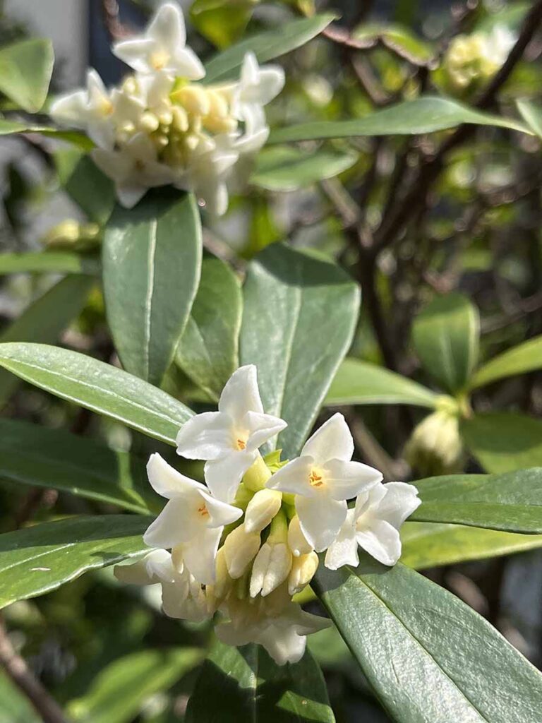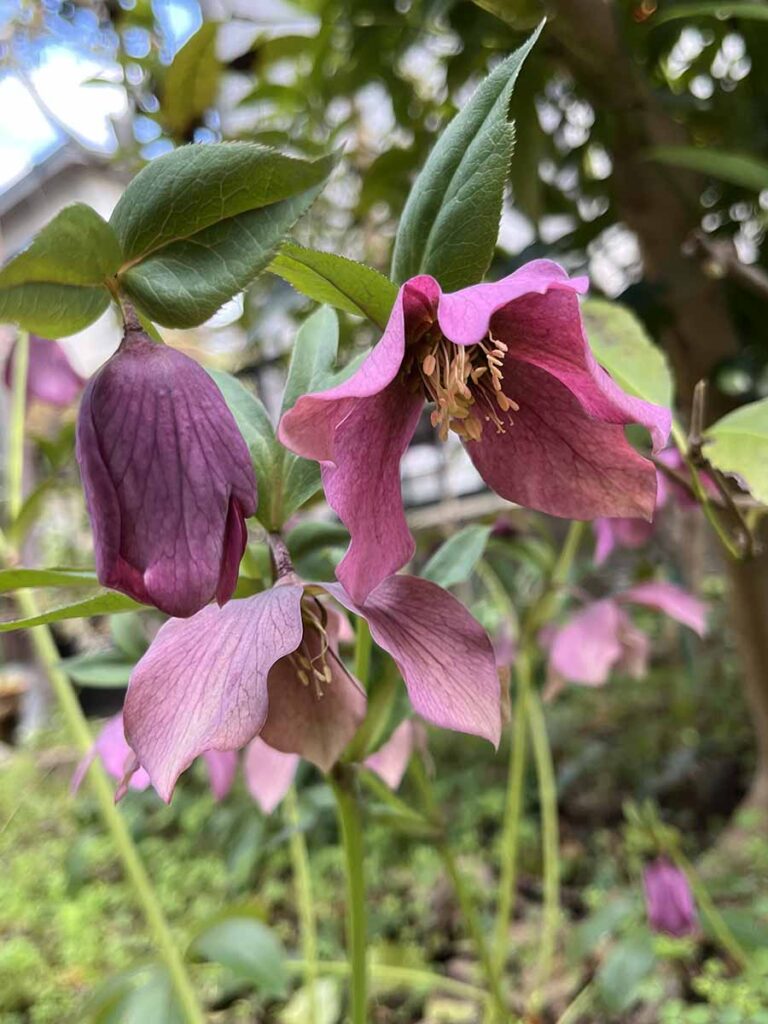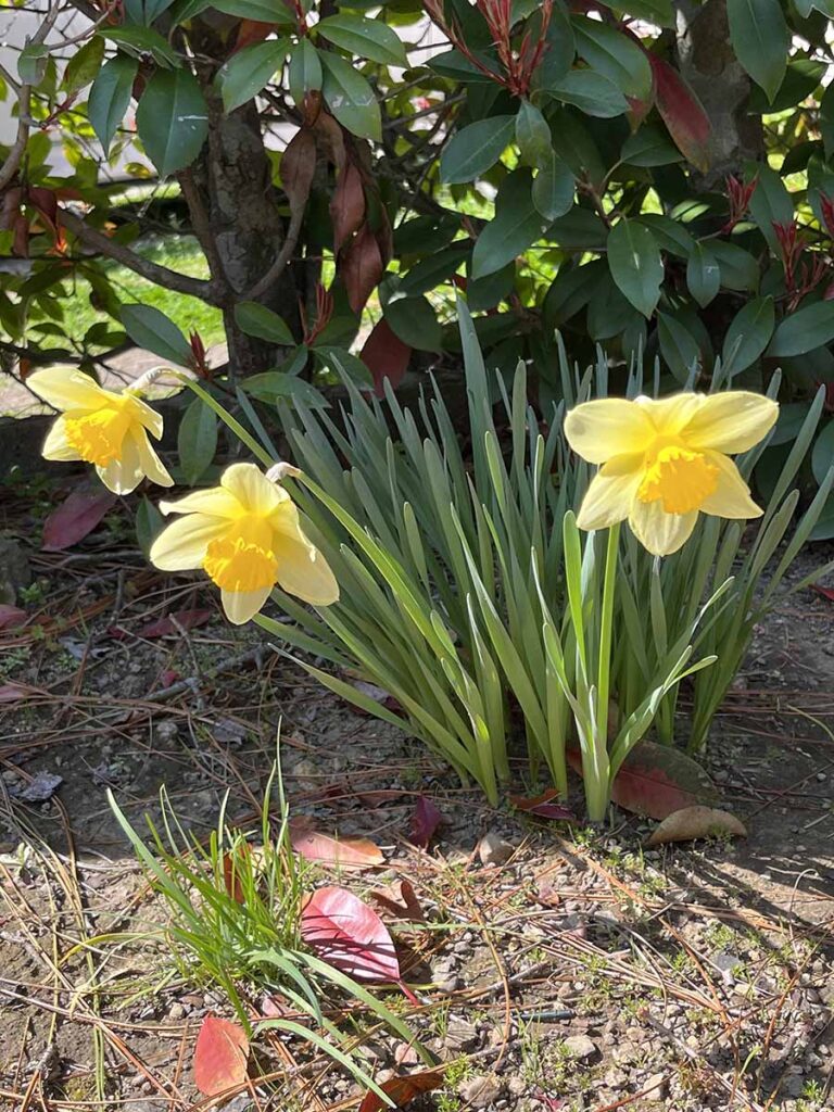 気を取り直し、伐採していくらかきれいになった小さな庭を観察して回るのは、楽しいものです。花壇にはチューリップや鉄砲ユリの芽が出ていました。球根を埋めっぱなしにしているだけなのですが、やっと春が来たのだな~と実感します。ところどころに水仙(スイセン)が咲き、風に揺れています。小さな裏庭があるのですが(昔はこの場所にテーブルを出して家族で食事をしていました)、そこでは何やら爽やかな良い香りがします。香りの正体はジンチョウゲ。ひっそりと咲いていました。その足元にはクリスマスローズが、ピンクや紫、白の花を咲かせています。早速小枝を摘んで、玄関とトイレに生けてみました。お花屋さんの花も素敵ですが、買いに行く時間とお金がかかります。自宅のお庭の今しかない季節の花をさっと家の中に飾れるなんて、ある意味とても贅沢なことだと思います。