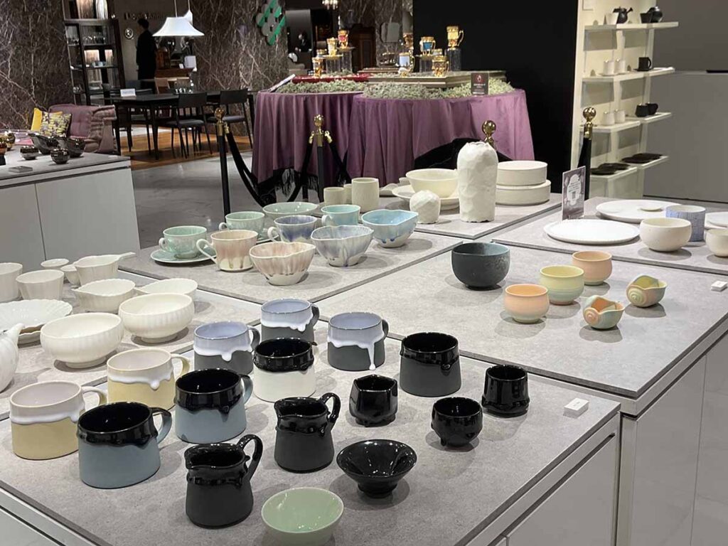 多治見の産地商社、井澤コーポレーションによる、土、作家、文化という3つの層から美濃を捉えた前例のない企画で、とうしん美濃陶芸美術館と(一社)セラミックバレー協議会が協力。担当の木屋龍太バイヤーは「『ART in MINO 土から生える2024』、23年の複合施設THE GROUND MINO開業といった、交流を通じて社会課題解決を探っていく活動が、産地を盛り上げることにつながると考える。国内最大産地である美濃の頑張りは、他産地にも影響を及ぼしてくれると思う。またリビングフロア顧客には、東海湖の存在、これによって土があり、釉薬が開発され、美濃の多様性が今日まで息づいていることを知ってもらえたら」と話す。